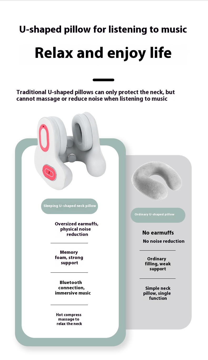Musik Nackkudde – ANC Brusreducering, Värmekompress & Vibration